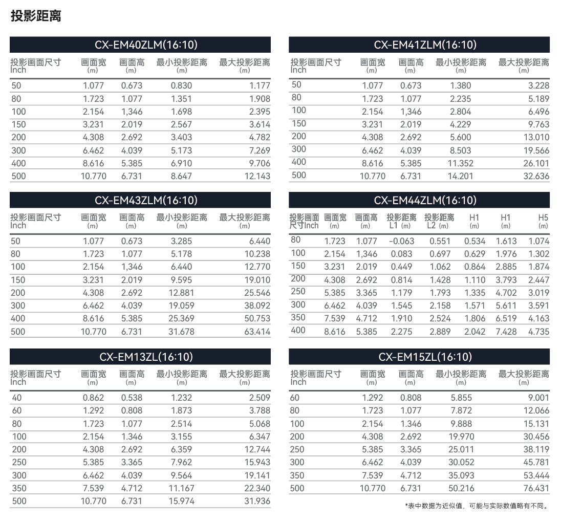 | 投射比 | 1.30-3.02 (標鏡) | |